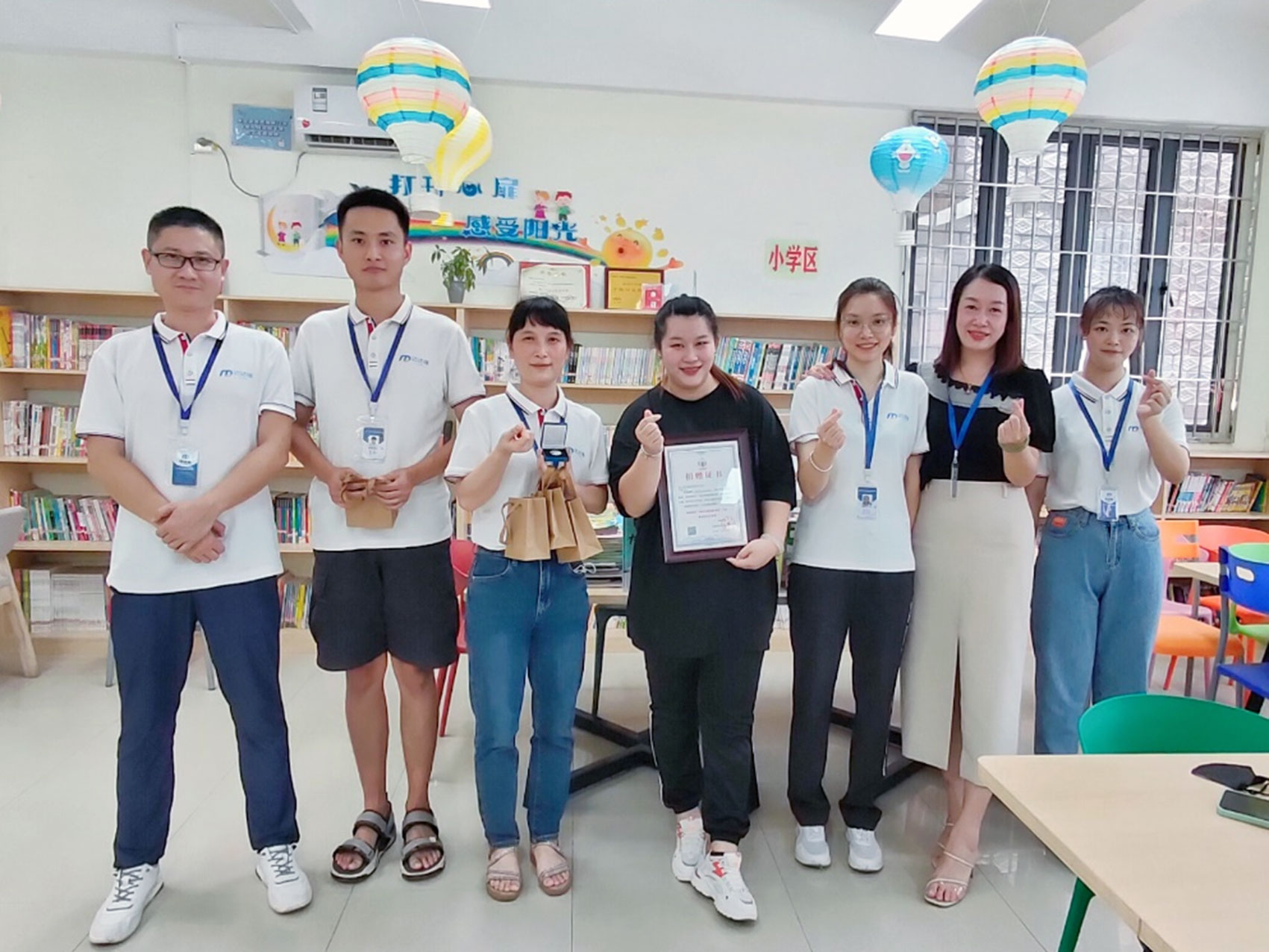 新垵公益圖書館負(fù)責(zé)人感謝公司給予圖書館的關(guān)懷和幫助致以誠(chéng)摯的謝意!表示將捐贈(zèng)的物資,全部用于“城中村里的圖書館”公益事業(yè)的發(fā)展。廈門邁達(dá)瑞的愛(ài)心捐贈(zèng)讓圖書館負(fù)責(zé)人十分感動(dòng),他們代表城中村外來(lái)務(wù)工子女向公司表示感謝,并向公司贈(zèng)送贈(zèng)書和勛章。