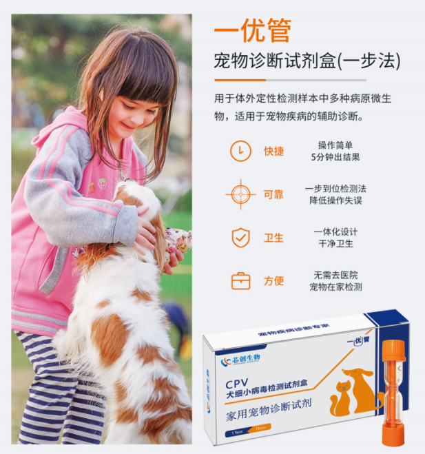 芯創生物公司推出全國首款 “一優管”寵物診斷試劑,幫助寵物主隨時居家對寵物進行疾病篩查。操作簡單,只需一個步驟,5分鐘即可出結果,很好的解決了寵物主們的健康顧慮。同時我們還根據寵物不同的病種,推出了多種疾病檢測套餐,一次采樣同時滿足不同病種檢測,真正做到科學養寵,提前預防。現在商城下單拍二發三,同時分享給您的愛寵好友,還有豐厚的擁金拿哦。