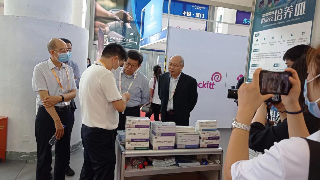在當前全球抗疫之下,此次投洽會健康產業鏈引起了中國外商協會會長陳德銘先生(原國家商務部部長),及廈門市外商協會會長朱獎思先生的高度關注,并于9日上午蒞臨我司展位開展指導工作。首先陳會長詳細了解了公司主營產品及生產經營狀況,對我司的發展前景給予了肯定。同時陳會長還與公司高層深聊了我司接下來的投資發展方向,尤其是對海外市場的廣闊前景給予了大力的支持,希望邁達瑞可以繼續砥礪前行,取得更大的成功。